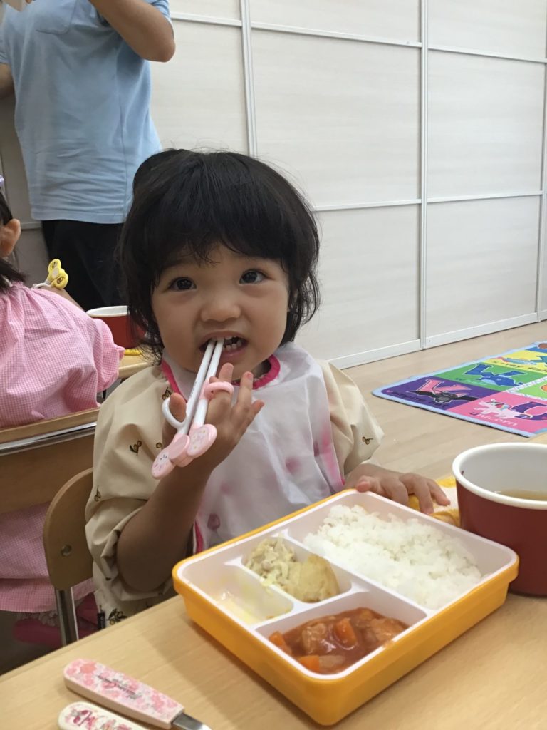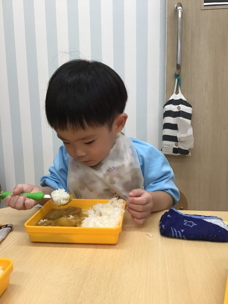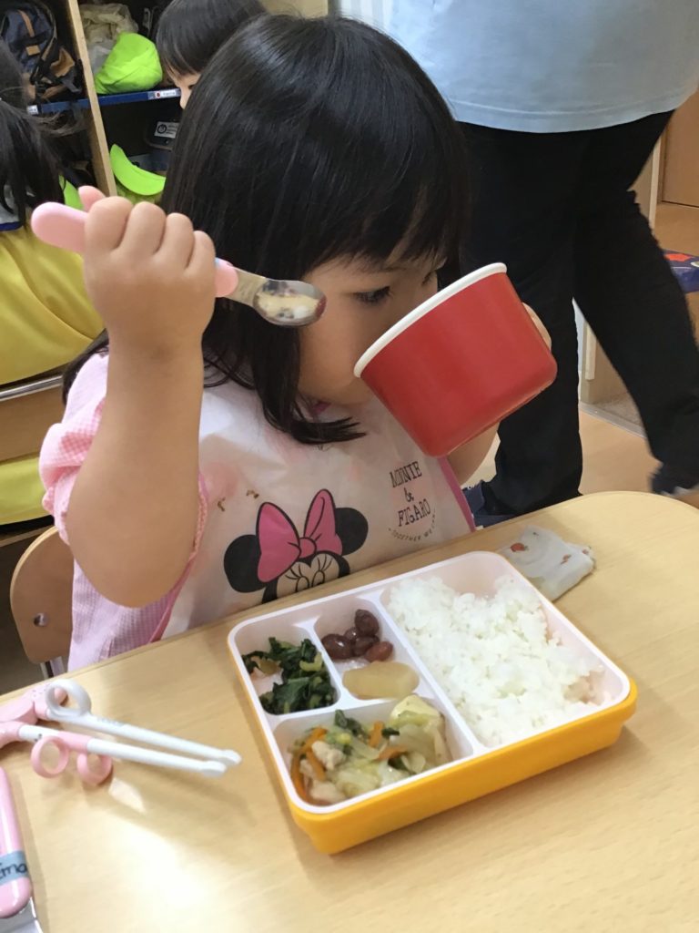 The children in Puppy class are enjoying their meals and snacks with such gusto! At our school, we provide warm lunches every day. Children using longstay program also get a special snack time. While some Puppy children might be fed by their parents at home, in class everyone works hard to eat using spoons or practice chopsticks. Seeing teachers and friends eat things they might not like encourages them to try, too. Let’s enjoy the meals and build healthy bodies together!