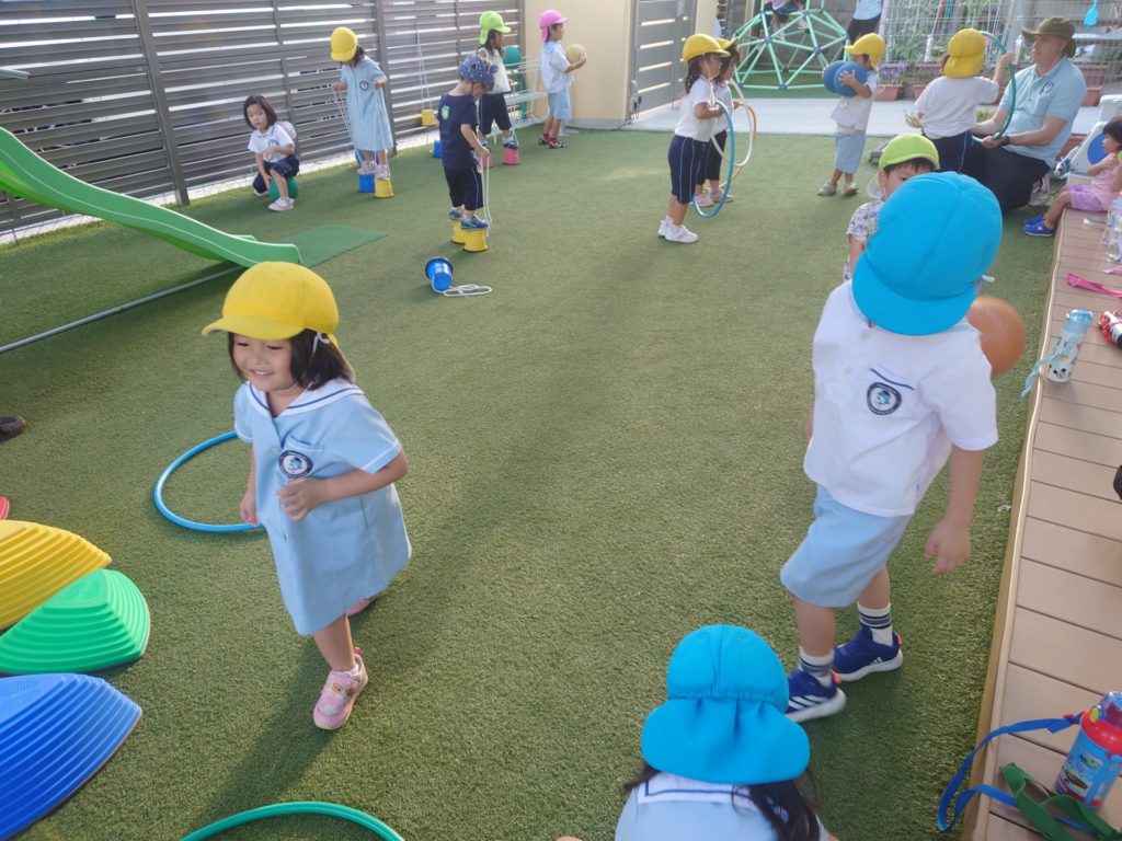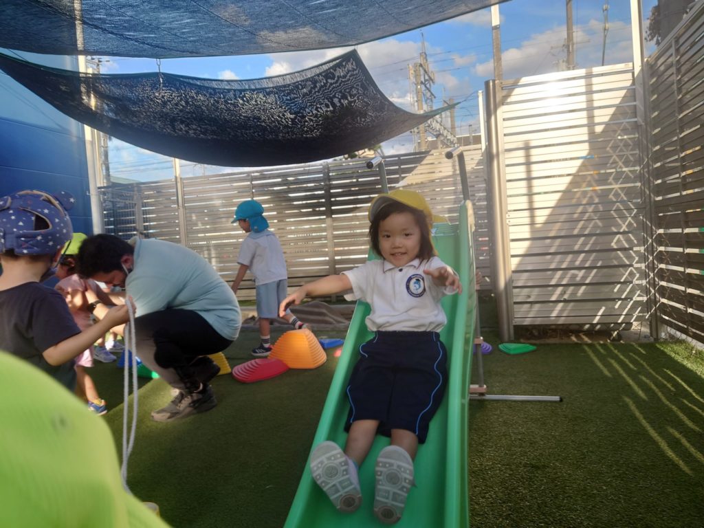 お彼岸が近づくにつれ、少しずつ過ごしやすい時間も出てきましたね。スクールでは今週から屋外活動を再開しています。とはいえこれまで空調のきいていたお部屋で過ごしてばかりでしたので、少しずつお外で過ごす時間を伸ばしていきながら、引き続き熱中症にも気を付けて活動していきます。久しぶりの園庭遊びに子ども達も大喜び!お友達や先生と一緒にたくさん遊ぶことができました。As the equinoctial holidays approach, there’re gradually getting more comfortable weather. At school, we’ve resumed outdoor activities starting this week, however, since we’ve been spending most of our time indoors with air conditioning during hot summer, we’ll be gradually increasing our time outside while continuing to be careful about heatstroke. The children were very happy to play in the playground again after so long! They got to play a lot with their friends and teachers.