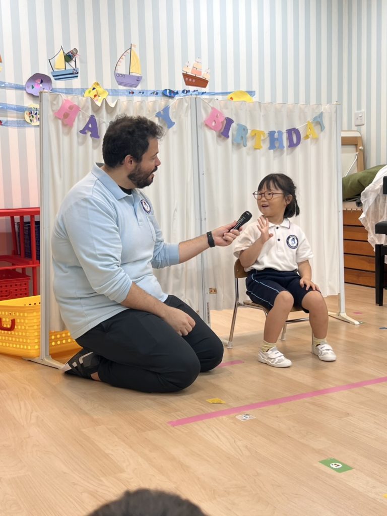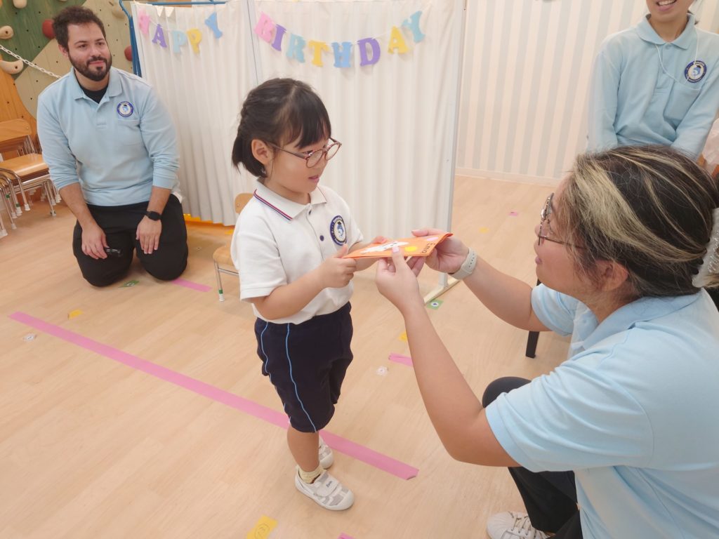 Today we had a birthday party to celebrate our friends who have birthdays in September. Unfortunately, some friends couldn’t come to school today, so we ended up with just one birthday star! All eyes in the school were focused on her. She seemed a little shy under everyone’s warm gaze the whole time, she looked absolutely delighted with the card and song everyone gave her. Happy Birthday!