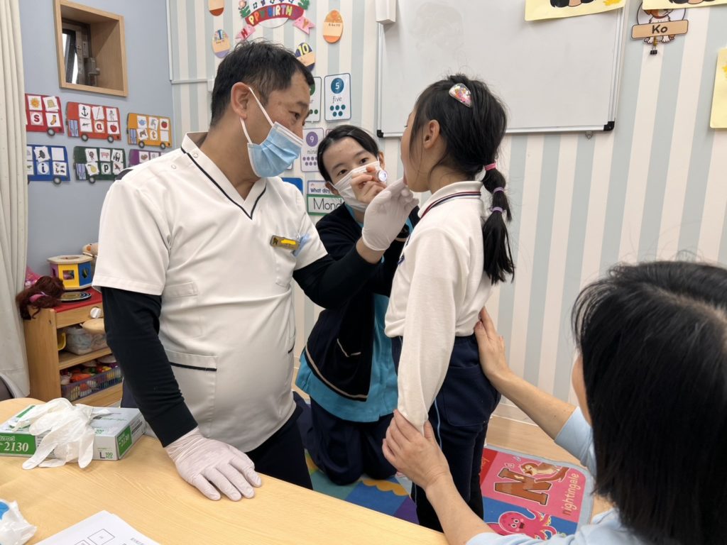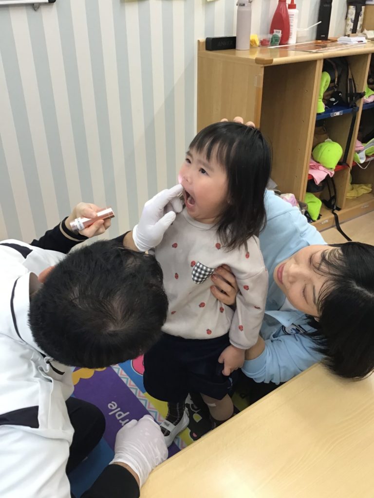 Today we had our half-yearly dental check-up. Starting with K3, each child stood before the dentist, opened their mouths wide, and had their teeth examined. At school, once children reach the kinder grade, they brush their teeth after lunch. Perhaps thanks to this, none of the children had teeth requiring treatment. Let’s continue to look after our dental health.