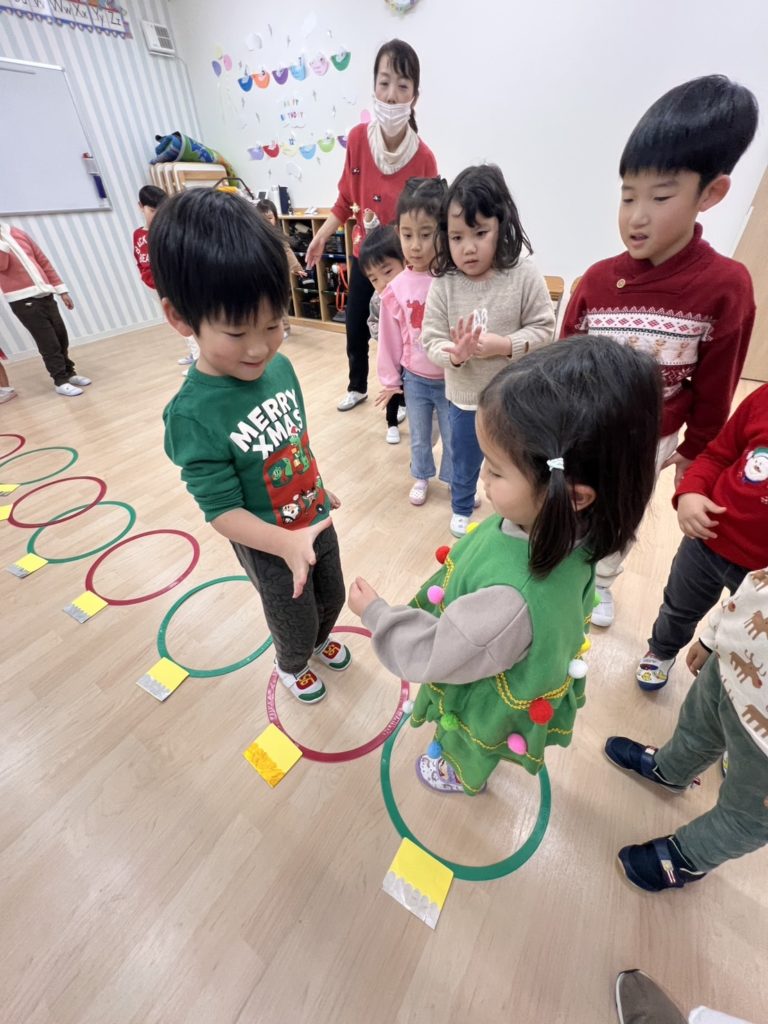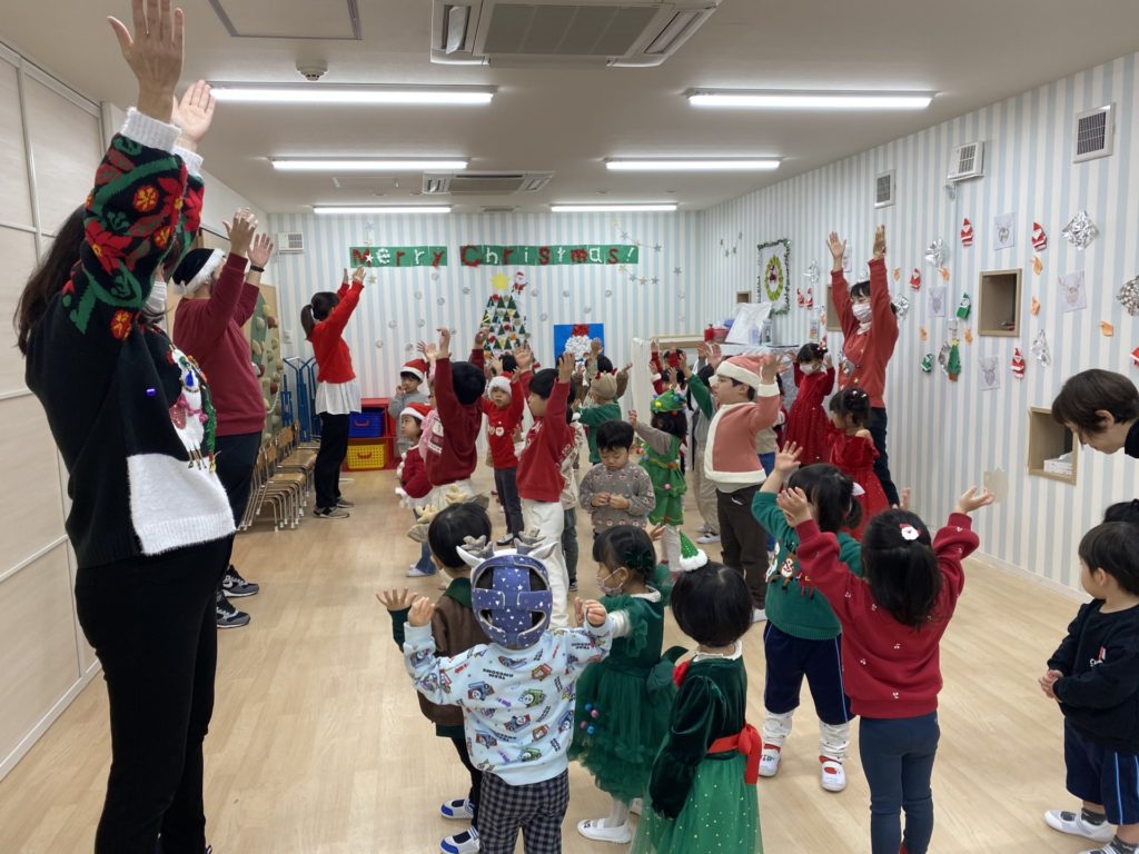 そのあとは、クリスマスにまつわる楽しいゲームをみんなで楽しみました。子どもたちは大盛り上がり!友だちと協力したり、応援し合ったりする姿も見られました。