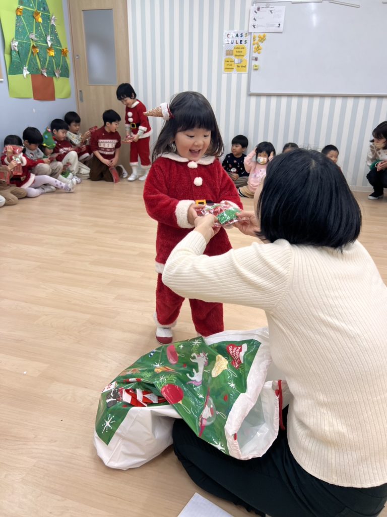 パーティーの最後には、園長先生がサンタさんから預かった特別なプレゼントを一人ひとりに手渡しました。受け取った瞬間の嬉しそうな笑顔がとても印象的で、心温まる素敵なひとときとなりました。