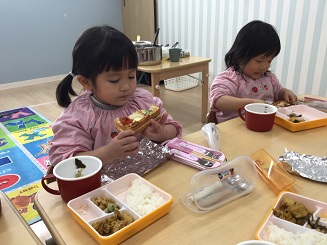 Hello, everyone! 今月もみんなが大好きなクッキング活動があります。Duckling classのお友達は食パンなどを使って信号機サンドを作りましたよ。青信号はキュウリ、赤信号はトマト、黄色信号はチーズです。みんなのサンドイッチのほかに4つのサンドイッチが余りました。すると子ども達が話し合い、クラス担任以外の先生達はクッキングをすることがないから、その先生達にあげよう!とフリーの先生達に御馳走をしてくれました。みんなの優しい気持ちが乗ったサンドイッチは世界で一番おいしかったのはもちろんのこと、子ども達が主体的に考え、理由をつけて決断できたことに先生達は大感激でした。