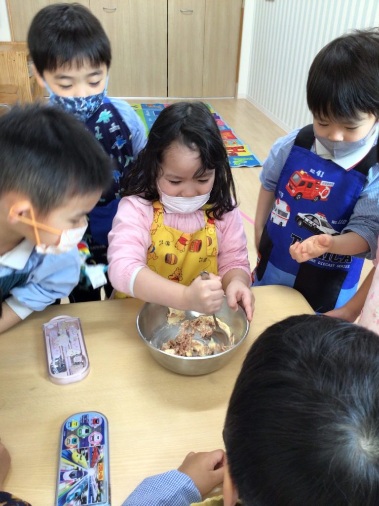 Cooking activities based on monthly themes are one of the children’s favorite things to do. The menus the teachers introduce using various ingredients range from familiar foods to new discoveries. For January’s Panda class cooking, they made zucchini boats with tuna. The children scooped out the insides of the zucchini themselves, filled them with tuna mixed with mayonnaise and cheese, and grilled them in the toaster. While scooping out the zucchini was a bit challenging, the effort made the zucchini boats taste twice as delicious.
