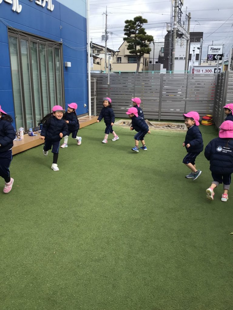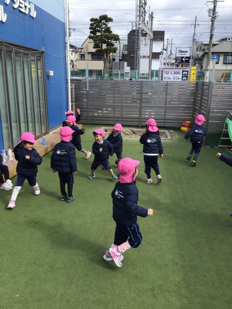 Hello, everyone! 今週も冷たい北風から始まりましたが、子ども達は元気に園生活を送っています。今週末はいよいよ発表会!みんなおうちの方にカッコイイところを見てほしくて一生懸命練習をしています。今日は練習の合間にPanda classのお友達はお外遊びを楽しみましたよ。クラスみんなでスタートした鬼ごっこでは寒さを吹き飛ばすような歓声を上げながら園庭いっぱいに駆け回っていました。追いかけている子も捕まった子もみんな笑顔の鬼ごっこ、とっても楽しかったようですね!