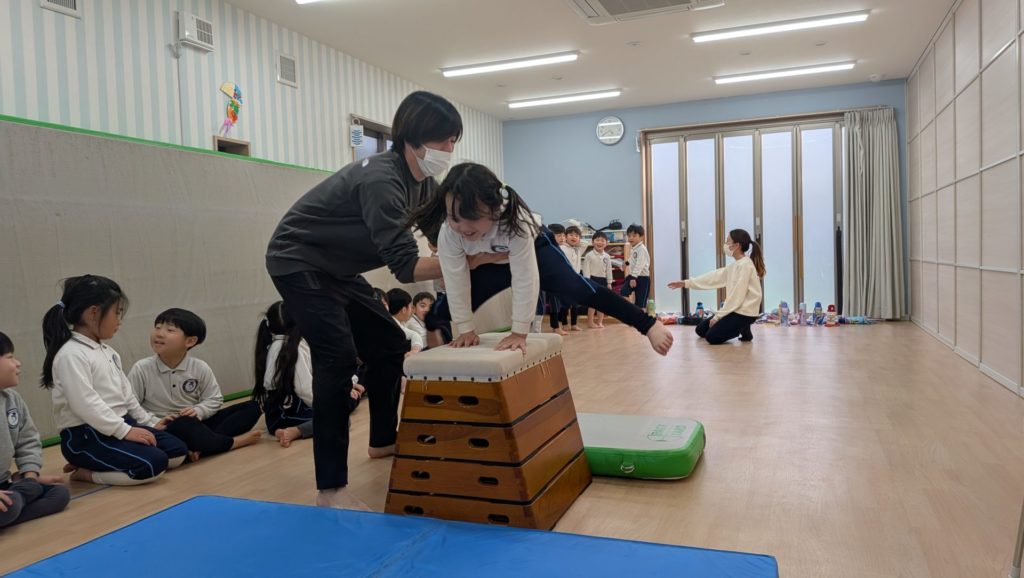 At the school condert last week, we had performances from our extracurricular dance class, and now our gymnastics class is also preparing for their upcoming performance day. The children are practicing hard to show their parents their routines on the mat excercises and vaulting boxes. They’re being taught not only to demonstrate how much stronger their bodies have become, but also to focus on the greetings and the beauty of their first and final poses. We have just one more chance to practice! Let’s all give it our best!